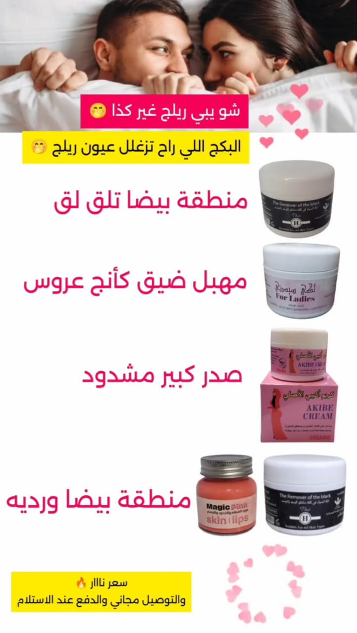 عرض خاص: كريم إزالة سواد المناطق الحساسة + كريم شد وتكبير الصدر والمؤخرة